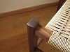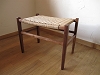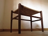 そのブラックウォールナット材で製作したスツールです。最小構成の部材数と最低限の太さと言うことを考えながら製作してみました。すっきりとして見た目をねらって、脚の先端の太さを細くしています。座面はデニッシュペーパーコードの鹿子編みです。
