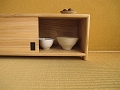 本体:クリ材 引戸:スギ柾白太材 引手:シマコクタン材 製作