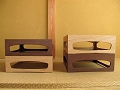 クリ材のものは大きさの印象よりもわりと軽量ですが、ウォールナット材のものは少し重さがあり、いずれも入れ子膳としてはしっかりしています。