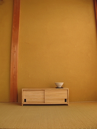 本体:クリ材 引戸:スギ柾白太材 引手:シマコクタン材 製作