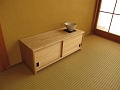 それを戸棚に取り入れてみたのがこの小さな戸棚です。戸棚といっても、小さな飾り棚とか、置床といった風情でしょうか。