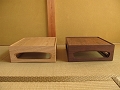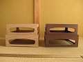 クリ材のものは大きさの印象よりもわりと軽量ですが、ウォールナット材のものは少し重さがあり、いずれも入れ子膳としてはしっかりしています。