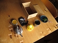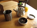 クリ材で製作し、屋外用の小型のクッキングストーブ、金属製の急須、カップ、外国製の市販のキャンディー缶を流用した茶入などが入るよう想定して大きさを決めています。